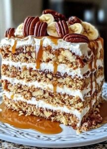 2. Cubre con el glaseado y decora con nueces, rodajas de plátano y un toque de caramelo.