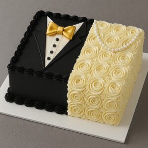 – Si no te sientes cómodo con la manga pastelera, puedes simplificar el diseño usando fondant para crear las formas de esmoquin y roseta.